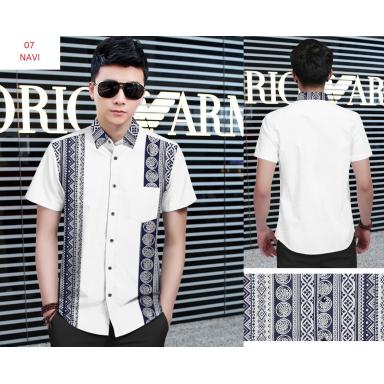 BR15269 - KEMEJA PRIA MAN 07 PUTIH COMBI NAVY