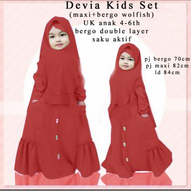 Deskripsi:Maxi +bergo bahan wolfish ukuran anak 4-6th,bergo doble layer saku aktif, Pj bergo 70cm,pj maxi 82cm Ld84cm