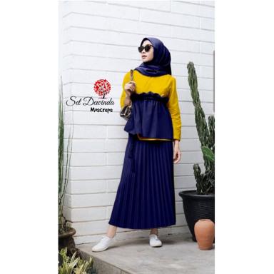 Deskripsi:bahan moscrepe,atasan LD100 pj60cm,kancing belakang +rok prisket karet pinggang belakang pj90cm, no pashmina