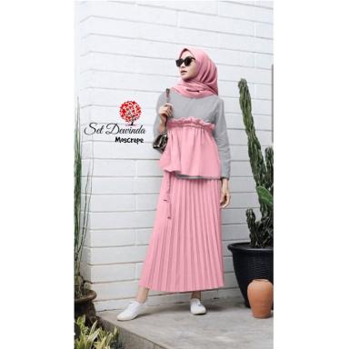 Deskripsi:bahan moscrepe,atasan LD100 pj60cm,kancing belakang +rok prisket karet pinggang belakang pj90cm, no pashmina