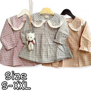 DRESS BAYI LENGAN PANJANG MOTIF KOTAK - Size L Hijau Pastel