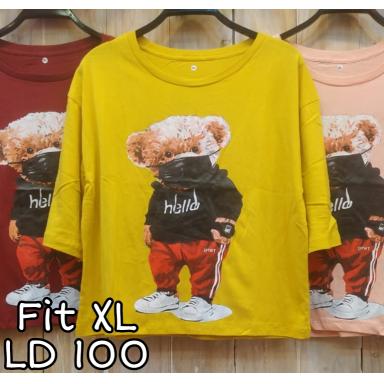 2. BR22412-2 BEAR HELLO LENGAN 3/4 TSHIRT TUMBLR TEE SIZE XL - Kuning 42.000 Ada Habis -