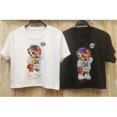 BR22482-1 - KAOS CROP TEE BEAR LOVELY - Putih