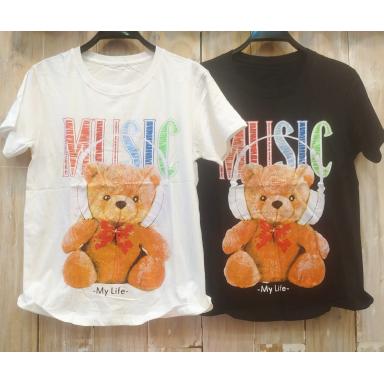 BR22747-2 - BEAR MUSIC TSHIRT TUMBLR TEE - Hitam