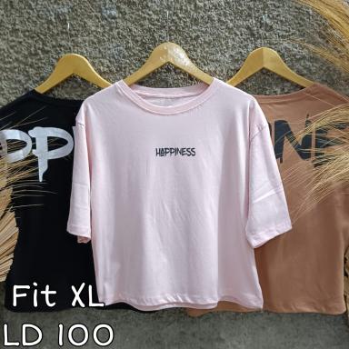 BR23131-1 - HAPPINESS LENGAN 3/4 TSHIRT TUMBLR TEE SIZE XL - Hitam