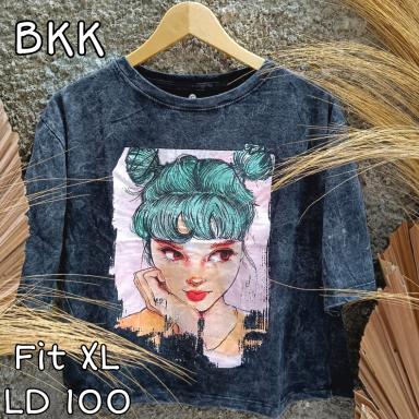 BR23225 - GIRL LENGAN 3/4 IMPORT BKK TSHIRT TUMBLR TEE HITAM SIZE XL