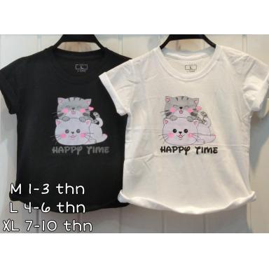 BR23296-4 - HAPPY CAT KAOS ANAK TSHIRT TUMBLR TEE - Size L Putih