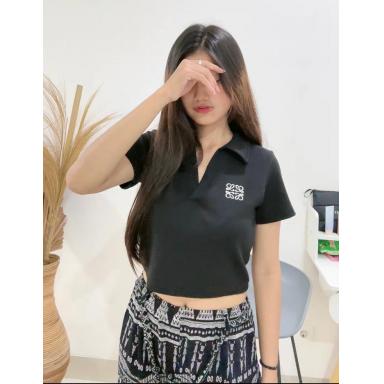 1. BR23869 KAOS CROP RIB KNIT LEHER V BUNGA HITAM 33.000 1 Habis -