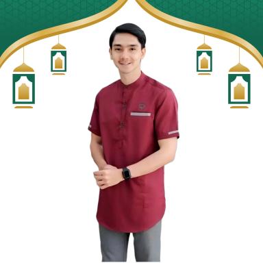 BAJU KOKO KURTA LENGAN PENDEK POLOS WARNA MAROON - Size L