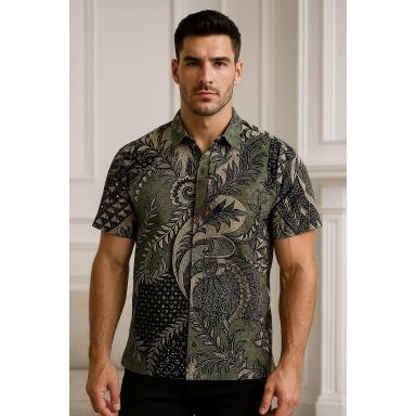 KEMEJA PRIA BATIK HIJAU LENGAN PENDEK - Size XL